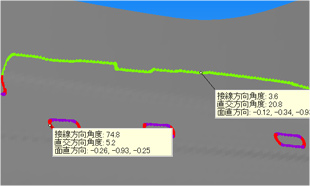 By picking point on the trim line, you can view the angle and optimum trim direction at that position, as well as check the condition using inflation trim line.