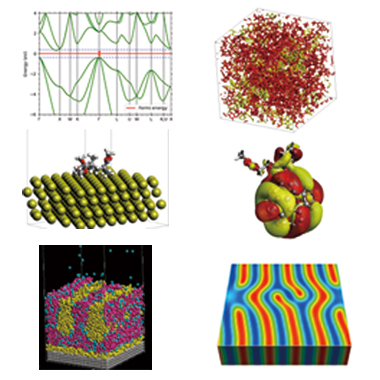 In the semiconductor industry—covering a broad range of applications such as bandgap engineering, electron transport at the microscopic scale, characteristics of oxide films and junction interfaces in SiC power devices, organic/inorganic interfaces, resist films and lithography including DSA and absorption spectra, wettability in cleaning processes, CVD and etching processes, thermal-curable resin nanocomposites and thermal conductivity for encapsulation (underfill) processes, and phase separation in organic semiconductors for devices such as organic thin-film solar cells—there is a growing demand for advanced materials that enable next-generation devices. Other important areas include thermal management materials, low-k and high-k dielectrics, advanced packaging materials, and interface adhesion control. Evaluating the properties of these materials requires considering their multiscale characteristics and manufacturing processes, as well as leveraging a wide range of simulation and experimental techniques.