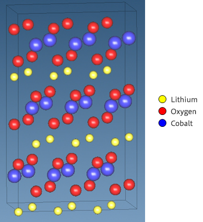 LiCoO₂のインターカレート構造を示し、リチウムイオン電池正極材料としての構造的特徴を視覚的に理解できる。