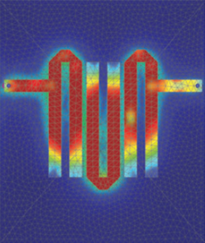 1.5GHzの電流密度分布(赤:強い、青:弱い)