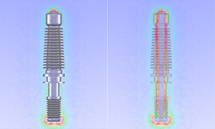 高圧電線に取り付けられる碍子の電界分布を予測します。