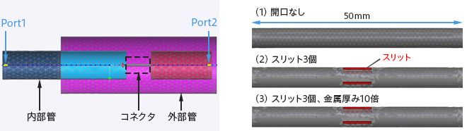 今回は開口部の異なる3種類のコネクターについて計算を行い、結果を比較しました。