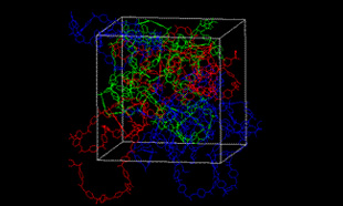 全原子モデルに近いユナイテッドアトムモデル(United Atom:水素原子を省略するモデル)を用いて、J-OCTAのアモルファス構造作成機により各高分子のアモルファス構造を作成しました。得られた構造に対して、温度を徐々に変化させた計算を連続的に実施します。