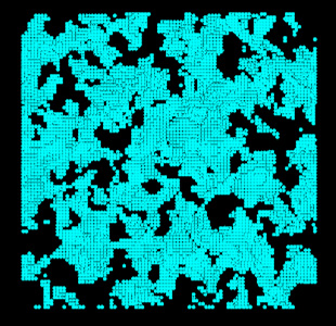 ΔE<0となる位置に直径2.75Åのテスト粒子を挿入した際の分布をXY平面に射影しました。気体分子の設置候補位置を示しており、自由体積の評価に活用することができます。