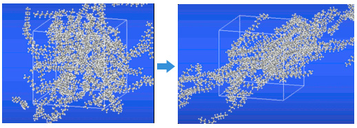 J-OCTAのモデリング機能を用いてn-decaneとn-hexadecaneを配置し、Lees-Edwards境界条件下でずり流動のシミュレーションを実施しました。