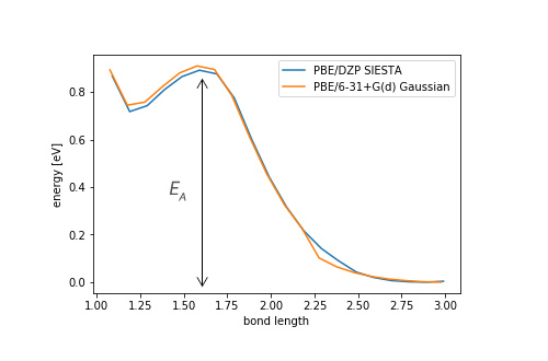 DFT計算(SIESTA)で得られた活性化エネルギー