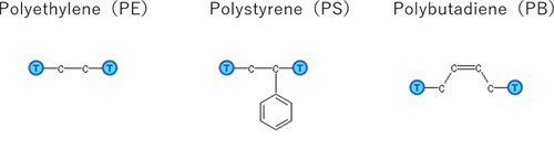 ポリマー3種(PE、PS、PB)と水のモデルが示されています。各モデルに対して、ガス分子(N₂、O₂、CO₂、CH₄)の溶解度係数を計算するための構造が視覚的に示されています。