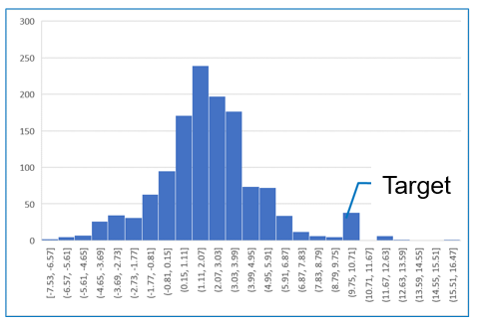 mol-inferを用いた逆解析のターゲット物性として設定された分配係数(logP = 10.0)のデータを示しています。まず、1297個の分子構造と物性値のデータを用いて、人工ニューラルネットワーク(ANN)により構造と物性の関係を学習させます。この学習済みモデルをもとに、逆方向の解析を行います。
