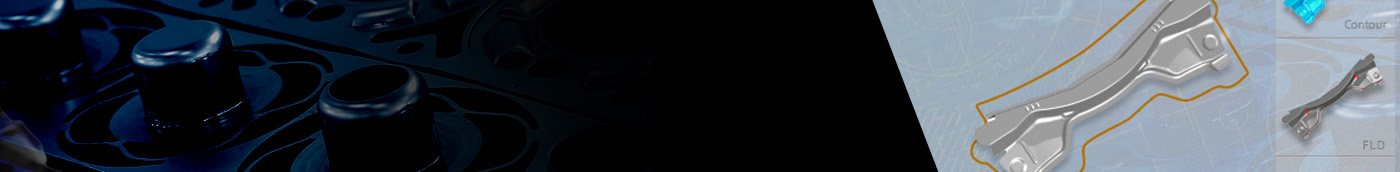 JSTAMP/LTは、製品形状CADデータ(完成品の設計データ)を入力して、ブランク材から製品形状までのプレス成形性を、短時間で評価する機能を備えています。計算の結果は、板厚分布や板厚減少率、応力などをカラーコンターで表示して確認することができます。また、われの発生を精度よく予測できる成形限界線図(FLD)や、断面に沿った板厚減少率のグラフを出力する機能もあります。