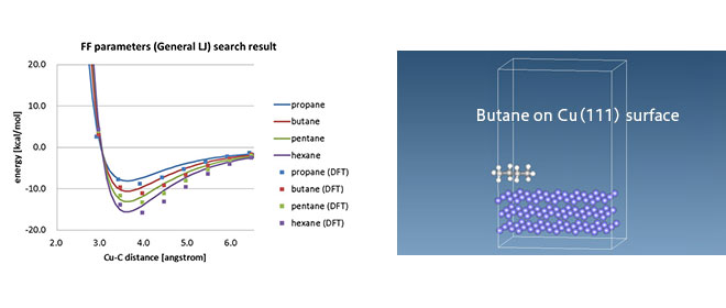 J-OCTA では DFTソフトとして SIESTA を用いたLJパラメータ決定機能を提供しており、有機無機界面の MD計算を実施できます。