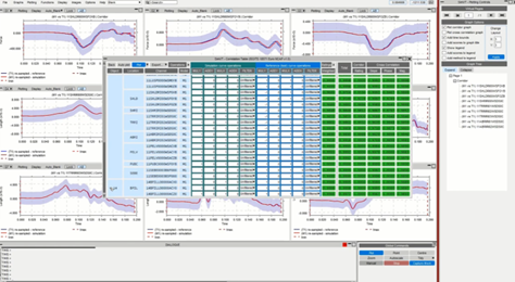 SimVTが持つ最大の特徴はインタラクティブな要因分析機能です。SimVTはスコア表示とグラフを連動させ、低スコア部分を色分けして表示します。これにより、スコア悪化が位相、傾き、振幅のどれが原因なのか、また実験とシミュレーションが乖離し始めるタイミングなどを直感的に特定でき、原因分析から改善方針策定までの時間を劇的に短縮できます。