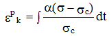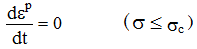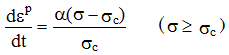 いま、σc を超えた後の塑性ひずみ速度 dεp/dt は越えた値に比例すると仮定すると