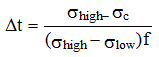 各繰り返し時において降伏応力 σc を越えている時間 Δt は次式で与えられる。