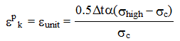 その間に進展する塑性ひずみ εpk は次式で与えられる。